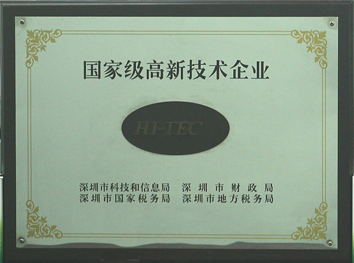 Shenzhen High-Tech Enterprise certificate